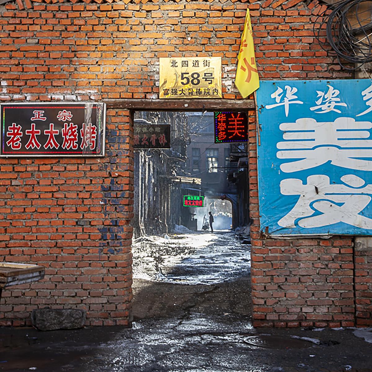 门洞为框,定格东北冬日老巷冷暖,斑驳招牌市井烟火,藏老城人文温度,远处行人的身影在冷雾里若隐若现,新旧招牌的红、蓝、金色彩,在萧瑟的冬日里碰撞出鲜活的市井气息,仿佛下一秒就能听见烤串的滋滋声和理发店的吹风机响,用镜头留存老城独有的生活质感,让冰冷的冬日街巷,因人间烟火而拥有温暖的人文底色。