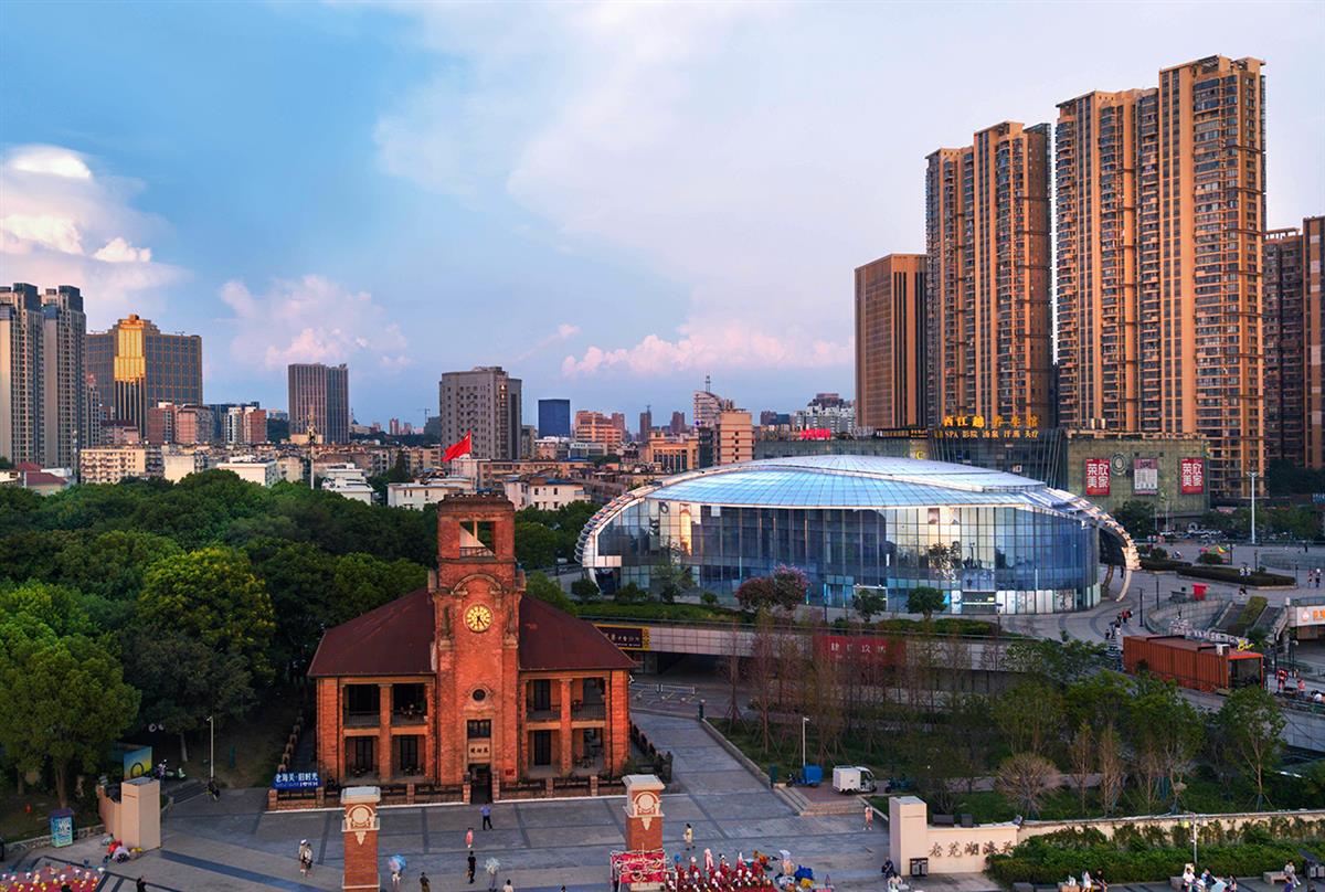《钟·城》2025年8月21日航拍于芜湖滨江公园。老海关钟楼,是芜湖刻在时光里的印记。一旁,玻璃穹顶的现代建筑拔地而起,与高楼林立的城市天际线交相辉映。新与旧在此相拥,历史的厚重与现代的活力碰撞交融。