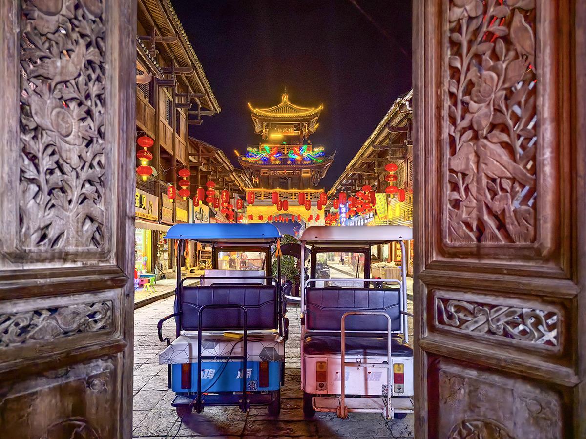 鸡鸣三省的青木川古镇:雕门映灯承古韵,飞檐楼阁浸彩光,小电驴驮着三省的烟火气。