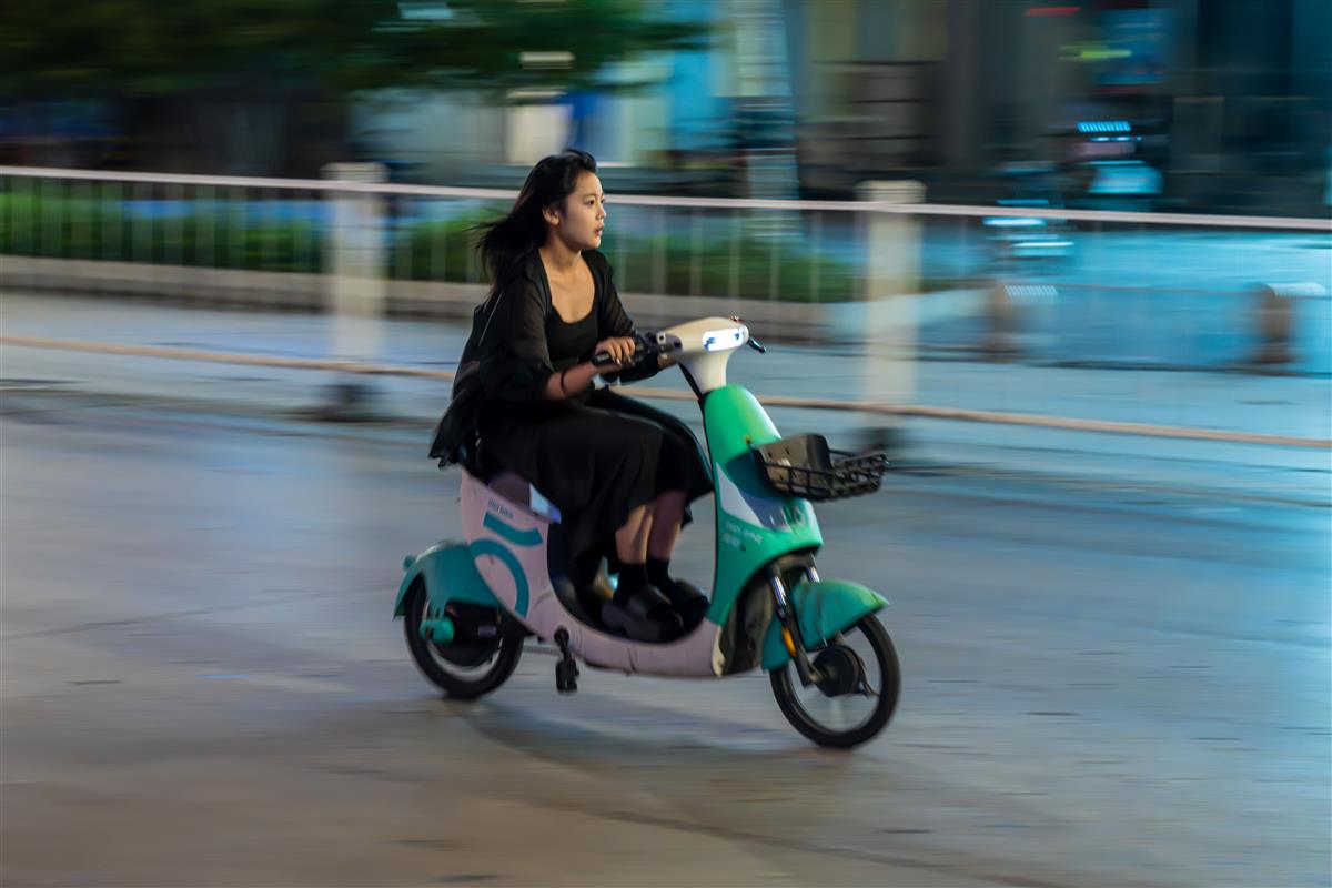 2025年8月19日午夜0点,河北省石家庄市平山县县城,正在参加北京摄影函授学院学习的作者拍摄线条作业回家的路上,用慢门拍摄了一组午夜街头的摇拍作品,刚下晚班的小女孩、刚下夜自习的女学生、骑共享电车遛狗的女孩、骑车飞驰的小青年、快递小哥们忙碌的身影。。等等构成了一幅幅时代的生活画卷,图为刚刚下夜班的女孩儿