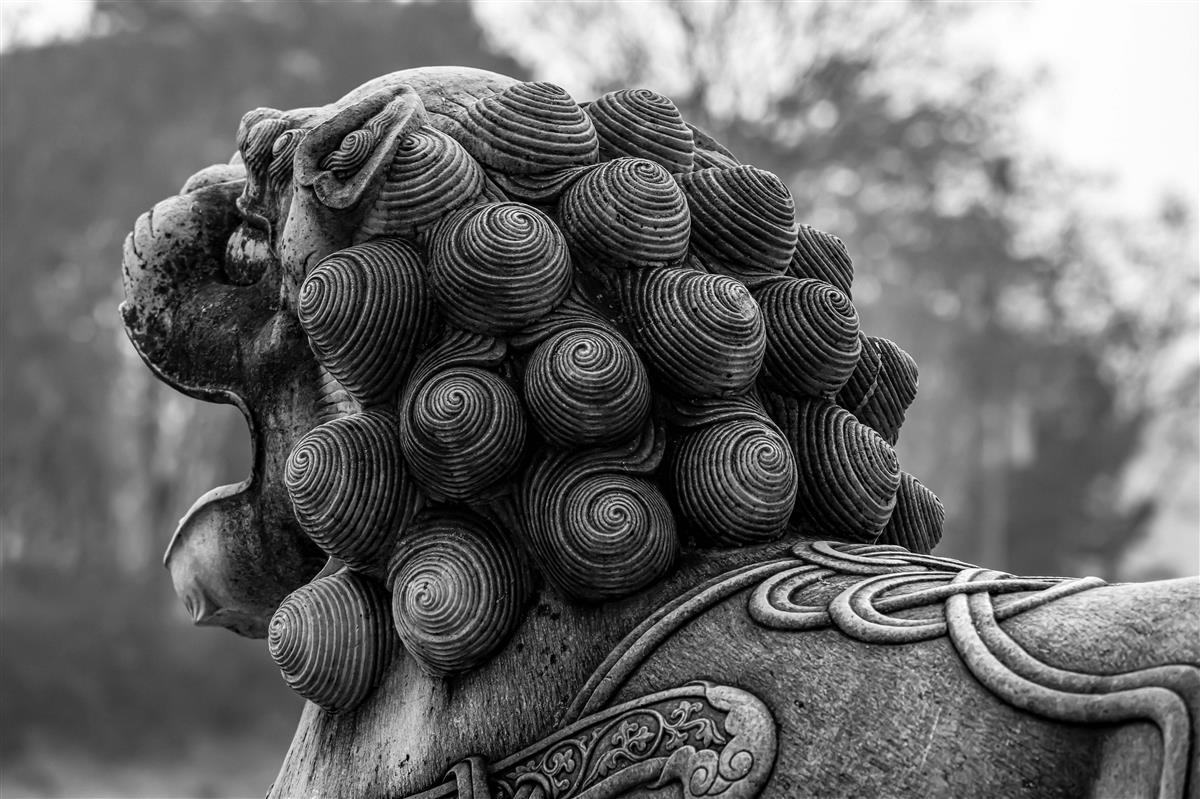 2025年10月25日,作者参加北京摄影函授学院河北学员大课堂清西陵采风活动,拍摄西陵古道边上,雄狮怒吼的威武气势,雄狮精美的花纹体现着中国传统石刻精湛的工艺