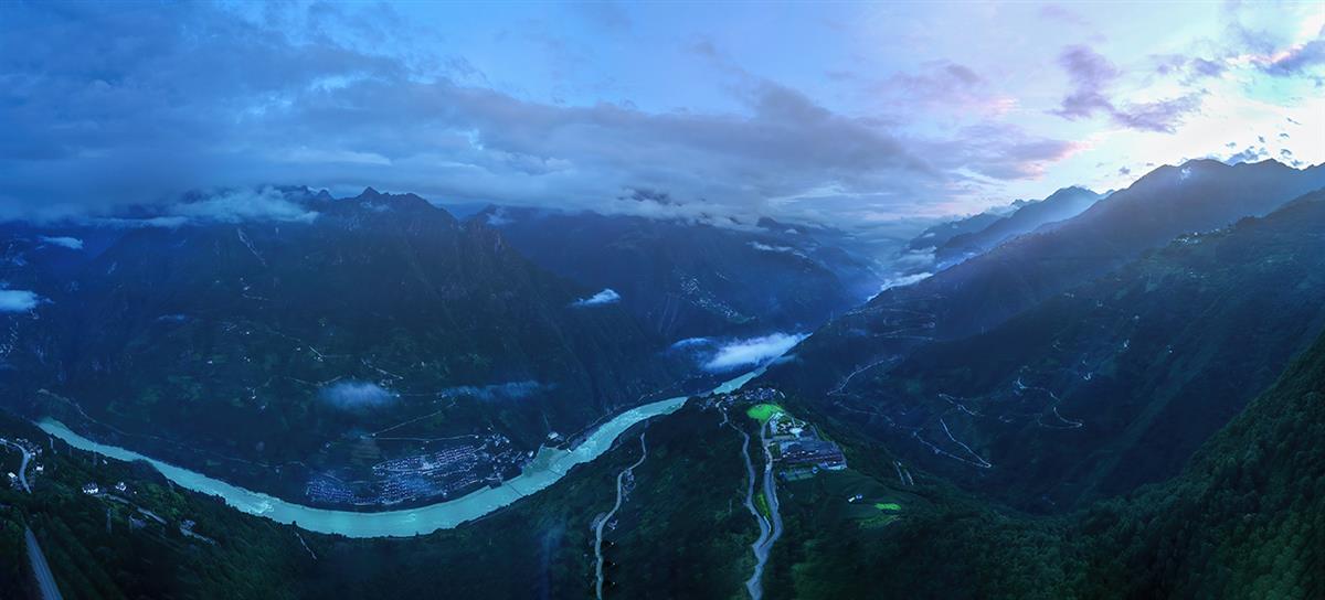 《怒江峡谷》2025年7月17日航拍于云南省怒江州福贡县老姆登村。在海拔1800多米的老姆登村航拍世纪上最深、最险的的峡谷之一【怒江峡谷】磅礴、震撼。江水如带蜿蜒,切割出壁立千仞的雄奇地貌,云雾缭绕于群山之间,将峡谷晕染成秘境画卷。两岸梯田层叠、村寨错落,藏着独有的人文风情,自然的磅礴与人文的温润在此共生,尽显山河壮阔之美。