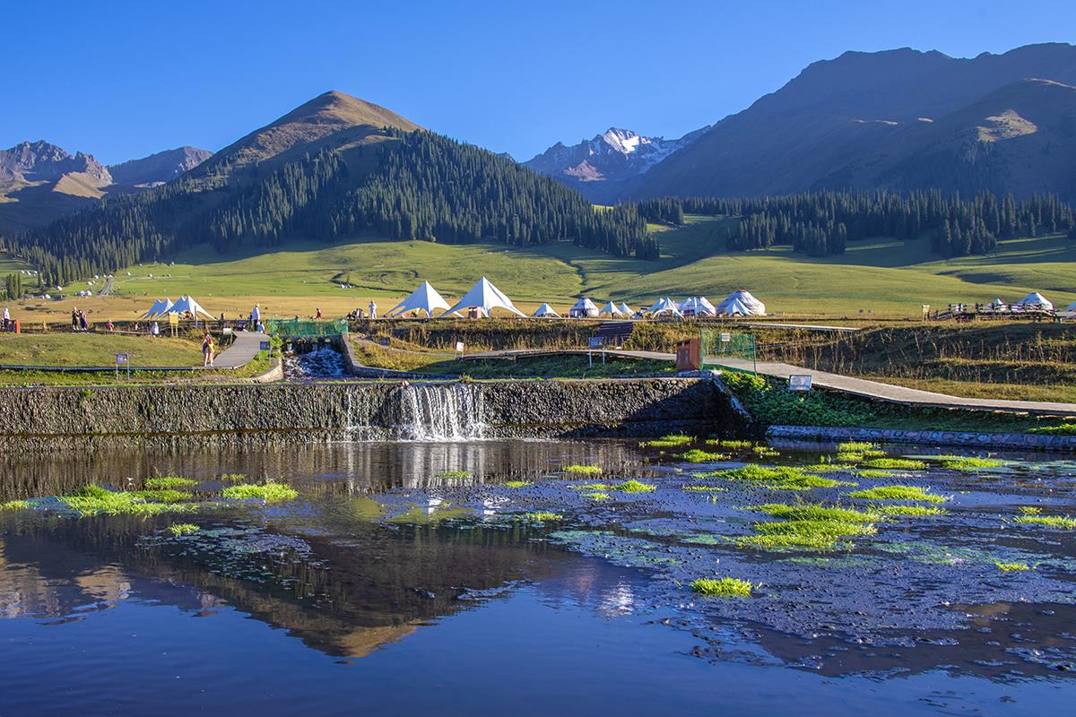 满目青翠的那拉提大草原,是自然赋予人类的一片宁静与壮美。连绵起伏的山峦与一望无际的草原相互交织,构成了一幅绚丽多彩的画卷。