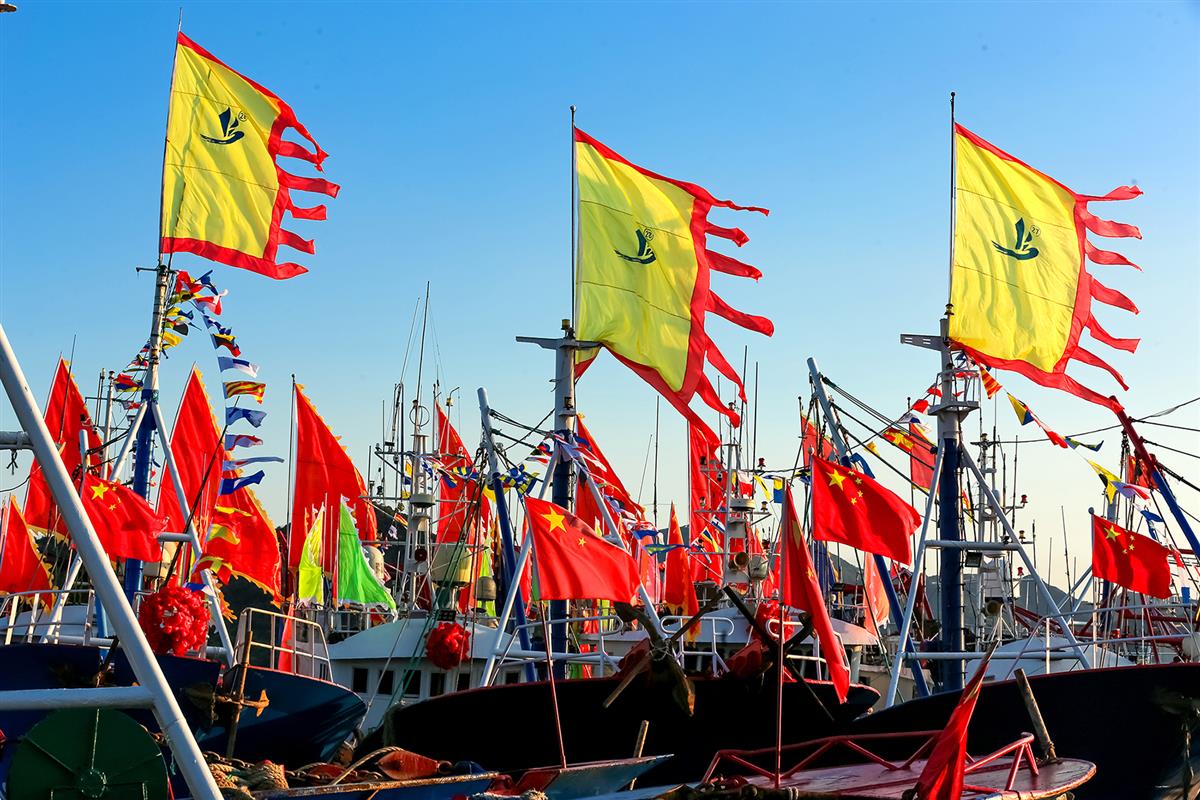 2025年9月14日中国象山开渔节前夕,渔港的出海渔船厉兵秣马旌旗猎猎,场面壮观。