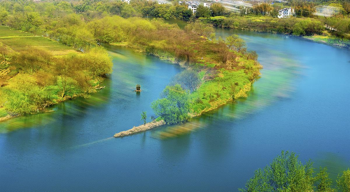 婺源月亮湾,二次曝光加摇摄技法,一底成像。