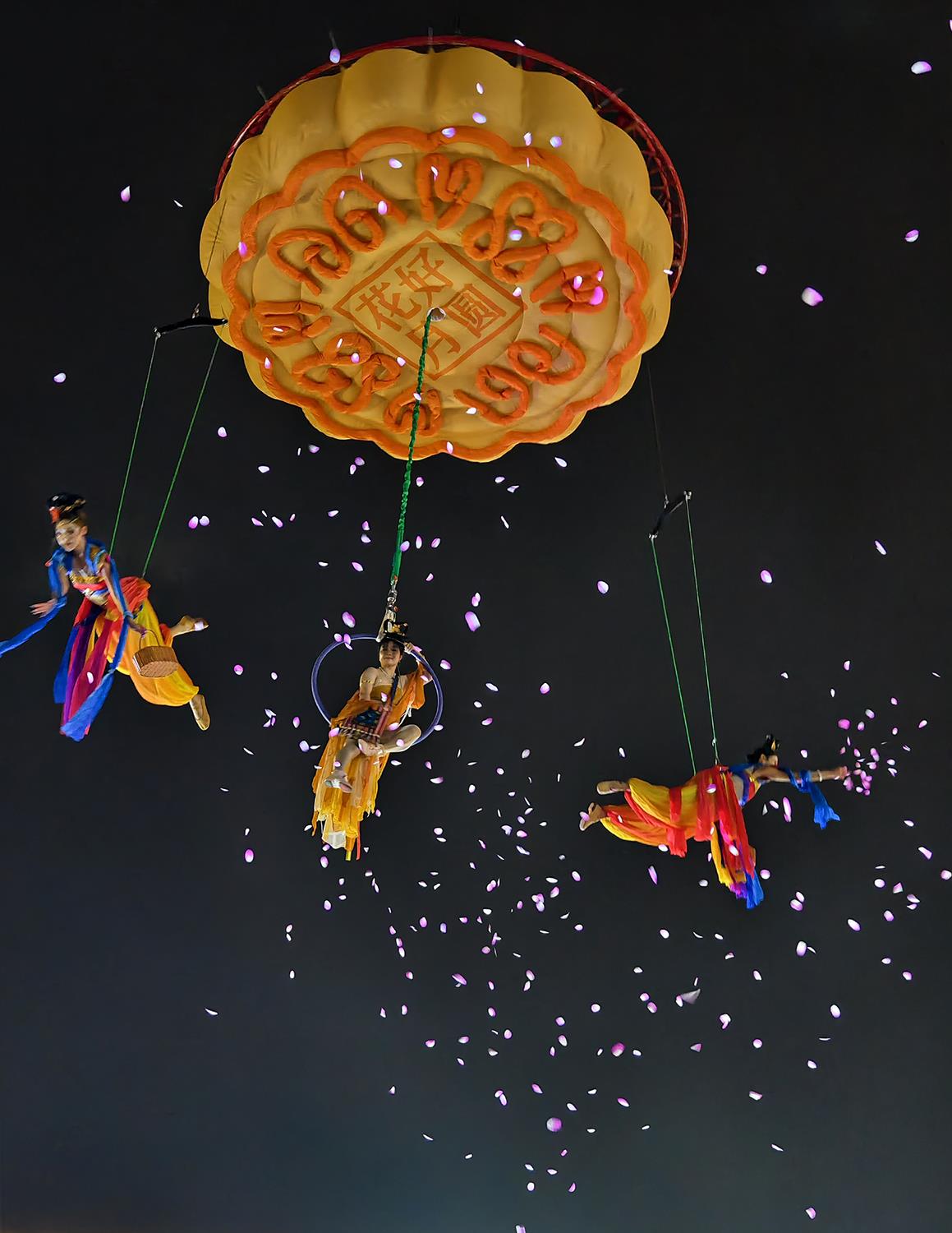 2025年中秋节的合肥罍街广场上,演员进行中秋飞天演绎