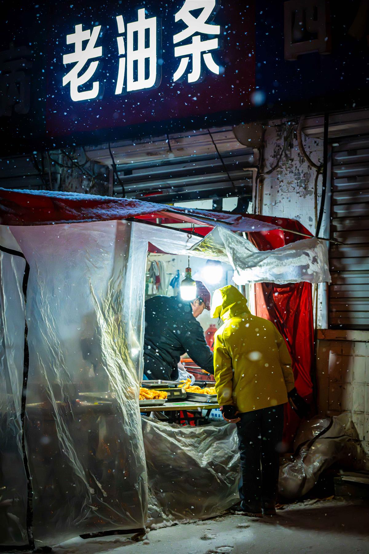 2026年1月19日早5点,河北省石家庄市平山县县城雪一直在下,平光南大街上李旭波的早点摊灯火早早就亮起来。他这个平山的外地人,老家在邢台宁晋,祖传的炸油条手艺。奔着孩子来平山落户快16年了,在这里还拜师傅学会了平山独有的炸麻糖技艺。他一生都专注这项营生,炸油条时也是他最快乐的时候,春夏秋冬、风雨无阻,这里的灯都是县城亮的最早的。