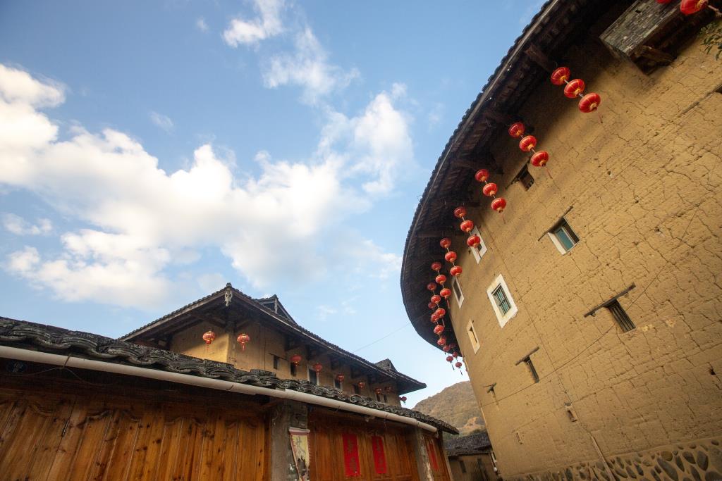 一串串红灯笼高悬檐角,朱红明艳,在清风里轻轻摇曳,光影落在斑驳的黄墙上,晕开一抹鲜活的烟火色。
