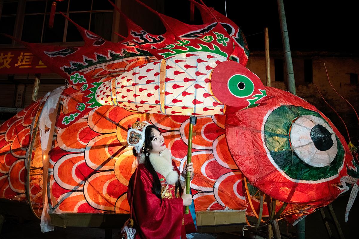 汪满田鱼灯始于清光绪初年,每年农历正月十三至十六,人们以鱼灯游村,当地人称“嬉鱼”。兴鱼会嬉灯以剋火灾,并祈愿年年有余和子孙兴旺。被列入安徽省省级非物质文化遗产。汪满田村庄沸腾了,喜庆热烈。看鱼灯的观众中青年一代为数众多,他们热爱祖国的古老传统,穿上传统汉服,古装打扮,手拿鱼灯,拍照不断,热情高涨,欢度元宵佳节。