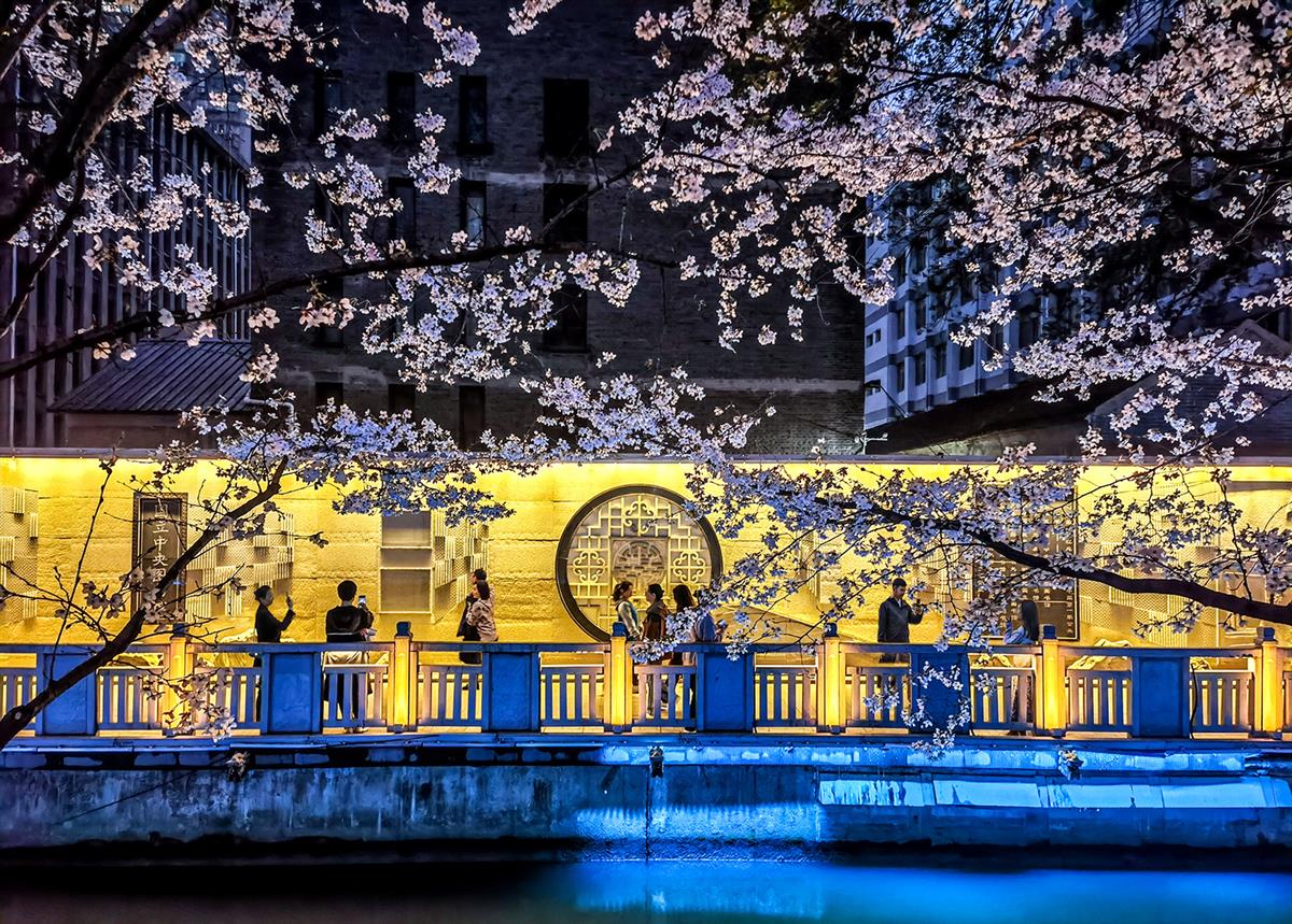 南京的樱花季,是一场视觉与心灵的盛宴,南京“樱花河”独有诗意浪漫与温馨暖意,尤其夜晚暖暖的橘色灯光映照满树樱花,映照民国人文旧址。居民们、情侣们悠闲地散步、闲坐,拍照,享受着融入生活的樱花美,生活的暖意和幸福感油然而生。