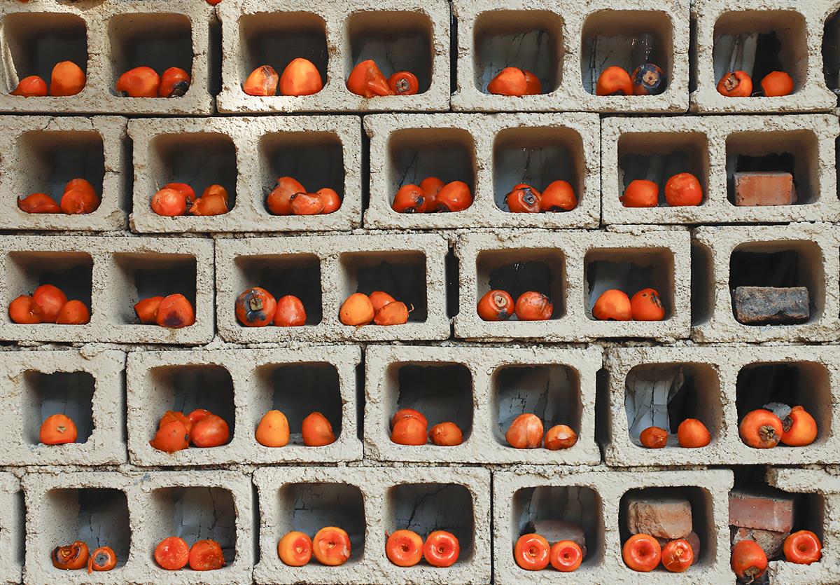 在一山村柿子被放在水泥构件里晾晒,很有趣味。