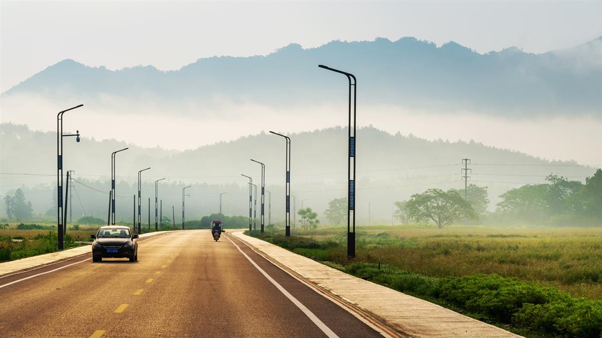 清晨的青弋江桃花潭乡村公路