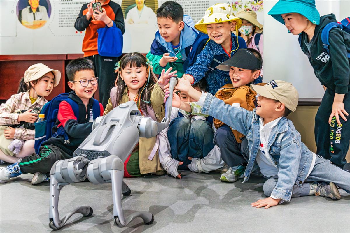 科技馆内孩子们与机器人互动