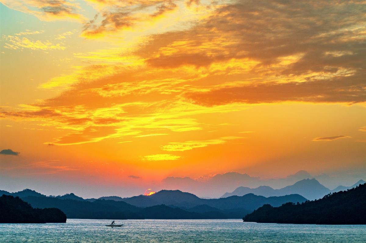 千岛湖上的落日余晖