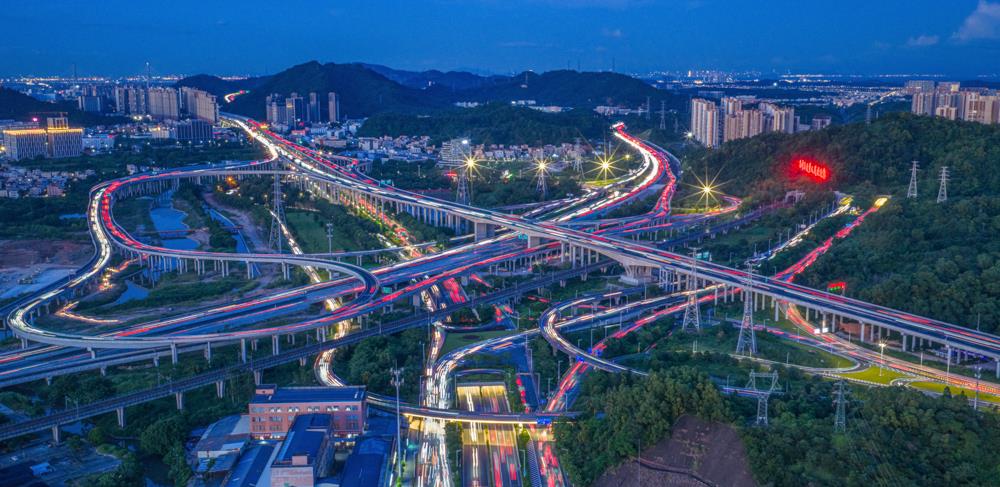 拍摄于广东省中山市,在城区高速路口,由高速公路,城市快线,高铁线路交织成了城市经济脉络。