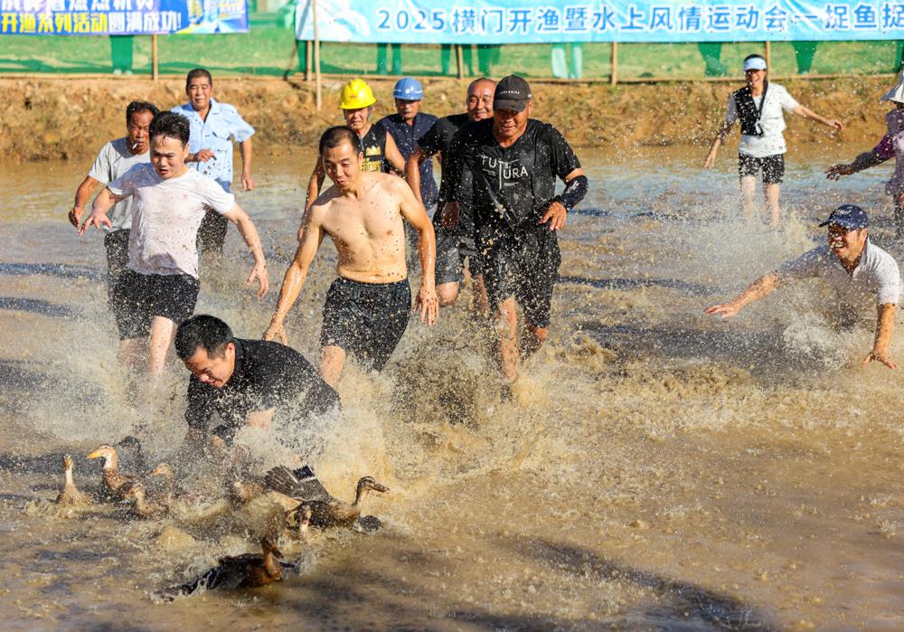 开渔节的号角吹响,一场别开生面的捉鸭大赛在泥塘中上演。人们褪去平日的拘谨,在飞溅的泥水中与鸭子展开了一场充满野趣的追逐。