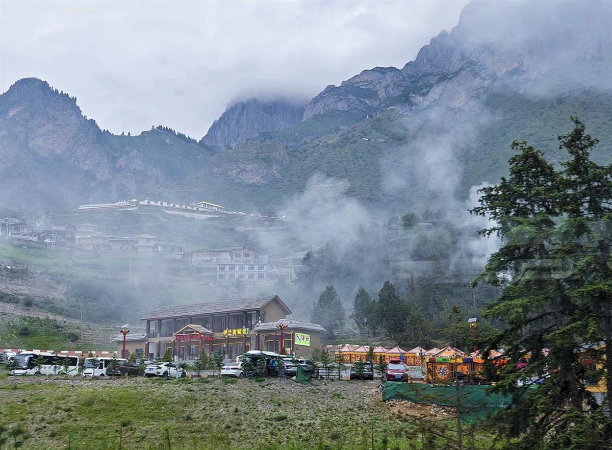 扎尕那被誉为“石匣子”里的天地大美,以自然景观闻名。旅游旺季车辆云集。