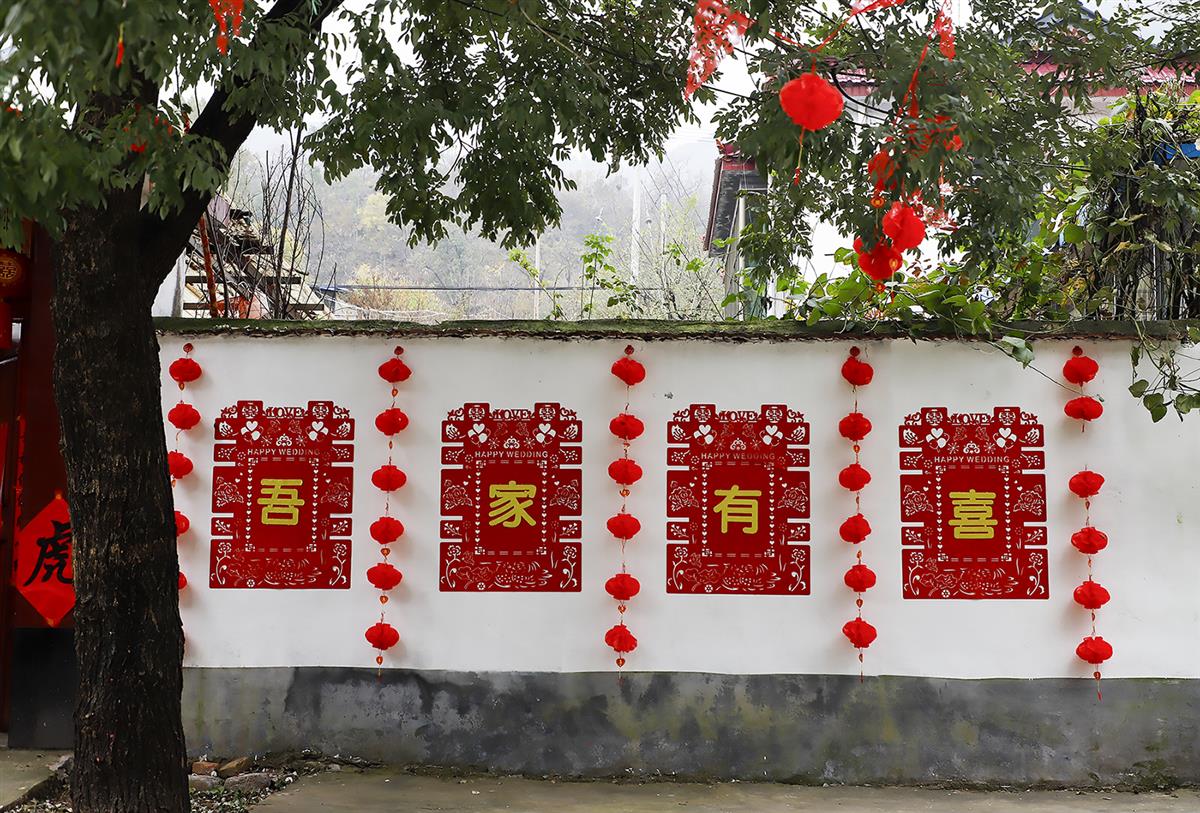 山村一农家办喜事的浓烈氛围,以及墙内的新楼房,反映了这个小山村的巨大变化。