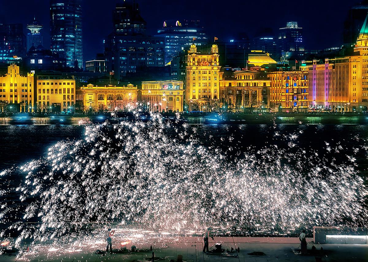 铁花打出上海浦江年味