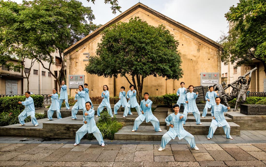 近二十位癌症协会会员齐挥太极,拳头刚劲有力。这已超越晨练,是对病魔的无声挑战,是对生命的最高礼赞。运河为之见证。
