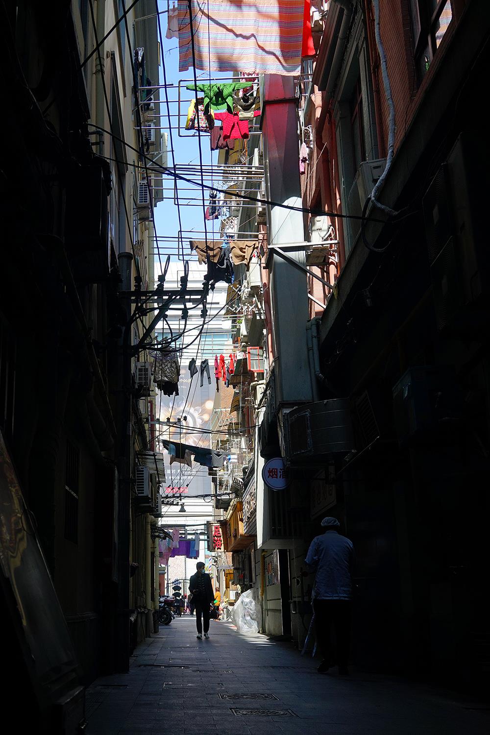 摄于上海黄浦区老城里弄住居。老街里弄住房间距狭窄,居民非常珍惜冬日阳光,喜欢洗洗晒晒。