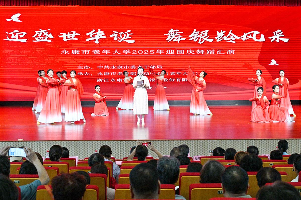 2025年9月24日,在浙江省永康市老年大学礼堂举行迎国庆舞蹈汇演,喜洋洋。