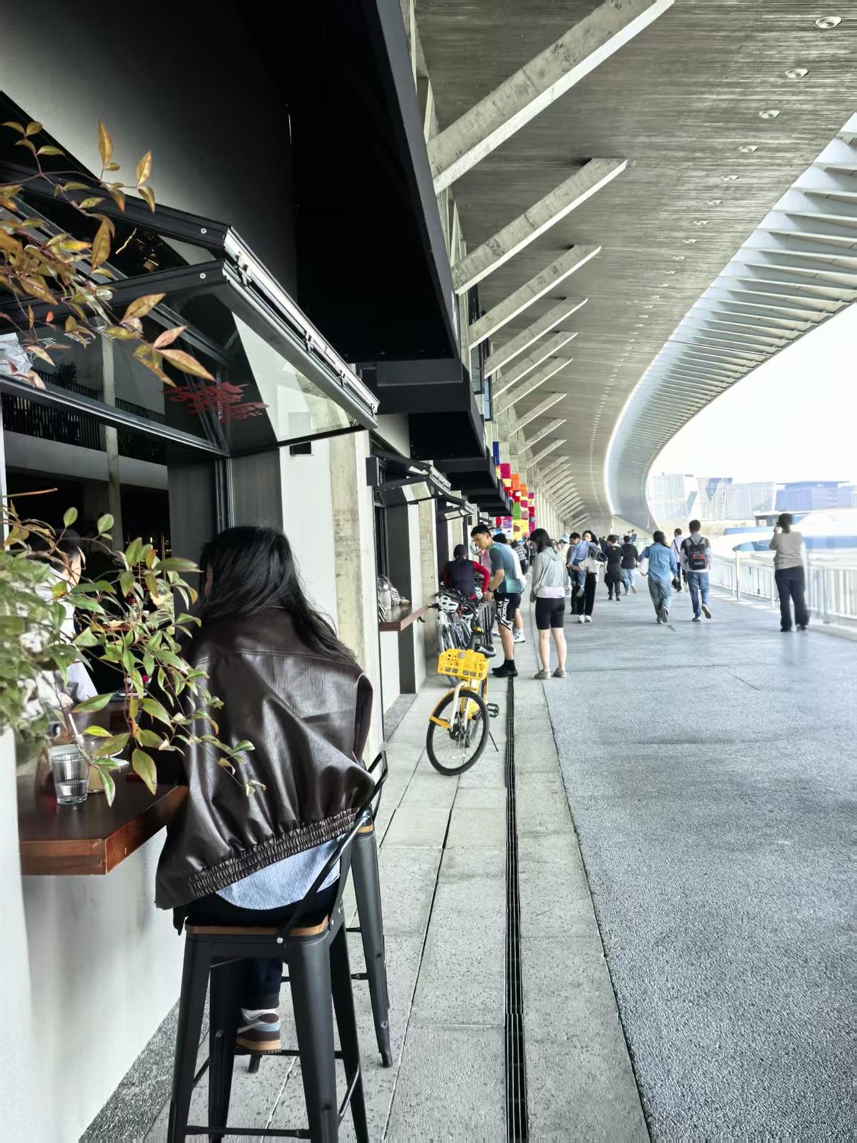 这里没有灯红酒绿的浮夸,只有生活本来的样子——简单、真实、触手可及。临港滴水湖的风,吹过的是城市的钢铁森林,留下的,是人间最温暖的烟火气息。弧形的高架桥像一把张开的伞,为滴水湖的步道撑起一片灰色的天空。桥底那粗糙的混凝土与斜向支撑结构,本是冷硬的城市建筑元素,却在光影中变得温和起来,仿佛在默默守护着桥下的一切。桥下的世界,才是生活真正的舞台。