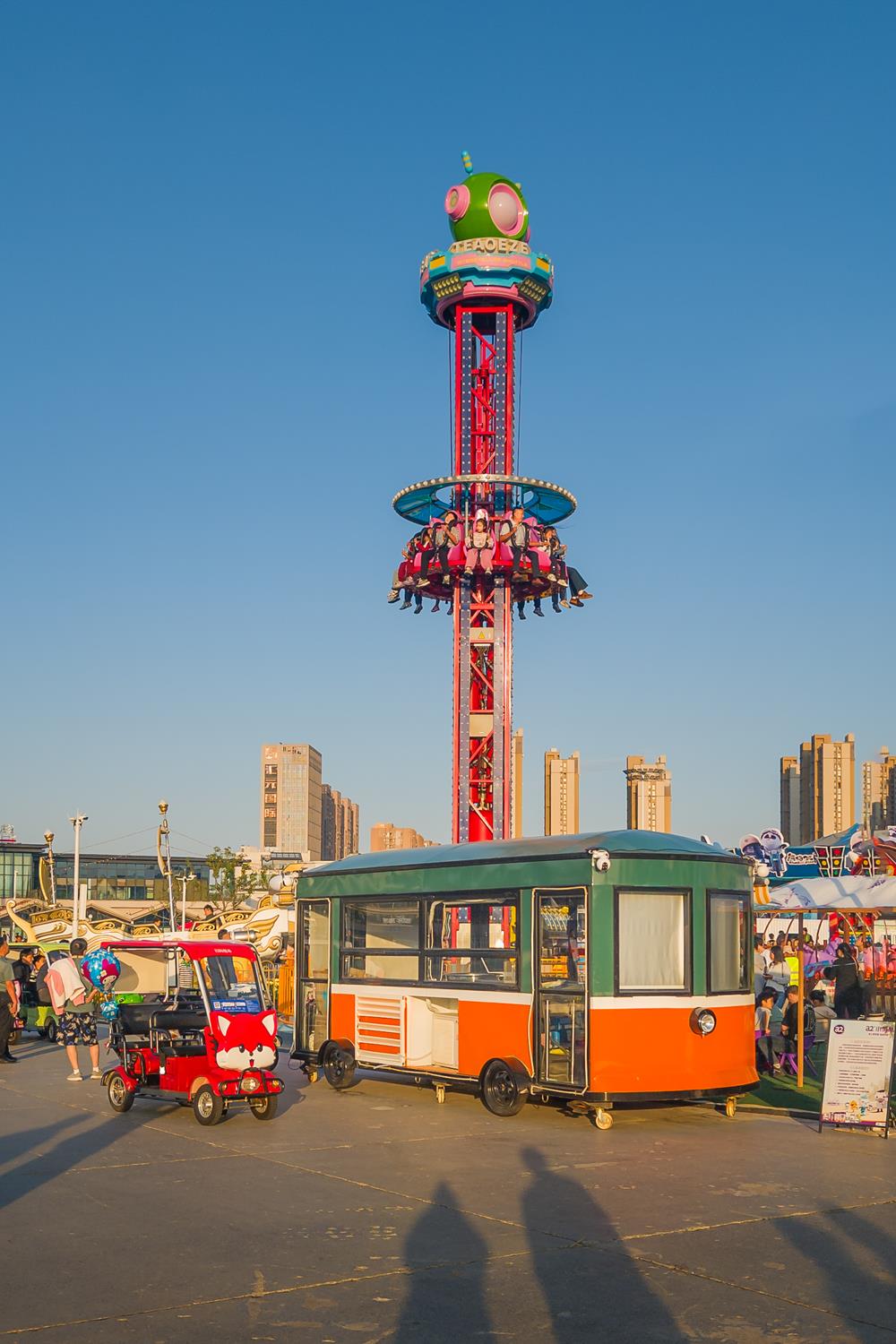 在骆岗公园的儿童乐园里,旋转升降塔载着孩子们在半空中划出欢乐的弧线。随着塔身缓缓升高又极速下降,孩子们的笑声与惊呼声交织,成为国庆假期里最鲜活的城市乐章。
