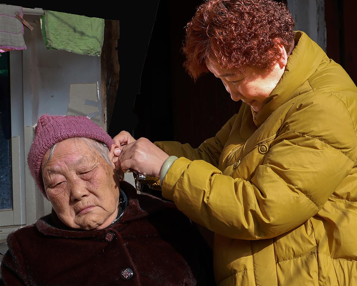 冬日暖阳,老太太在庭院晒着太阳,不时用手指挖耳朵,一旁的儿媳妇知道老太太又要掏耳朵了......。阳光驱散了冬日的寒气,儿媳指尖的温度透过发丝传来,比阳光更暖几分。