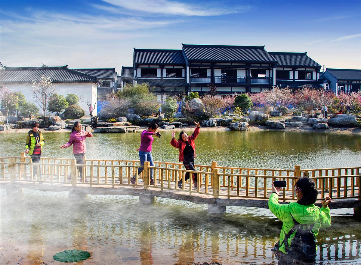 梅花盛开季节,游人来此赏花踏青、拍照拍视频,尽情享受快乐时光。