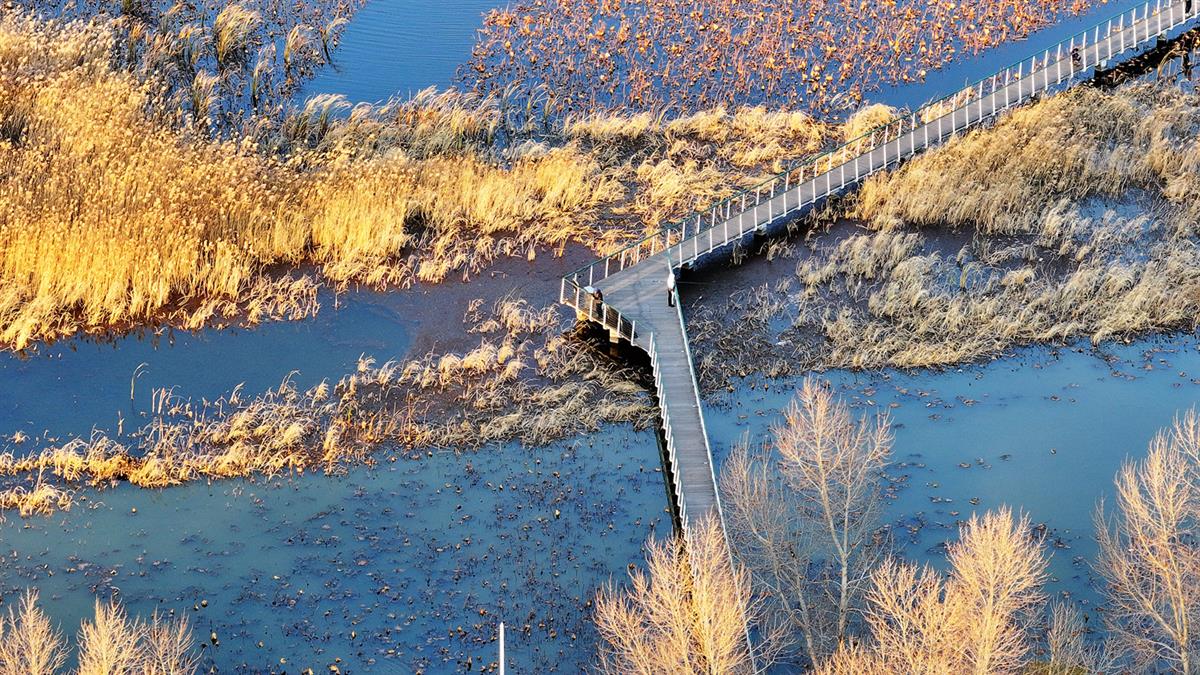 秋高气爽,湿地如画。