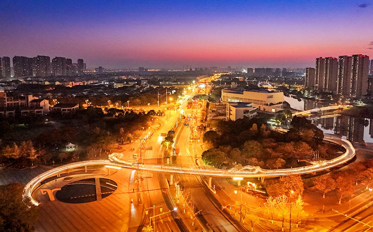 无锡泰伯大道日出与灯光美景