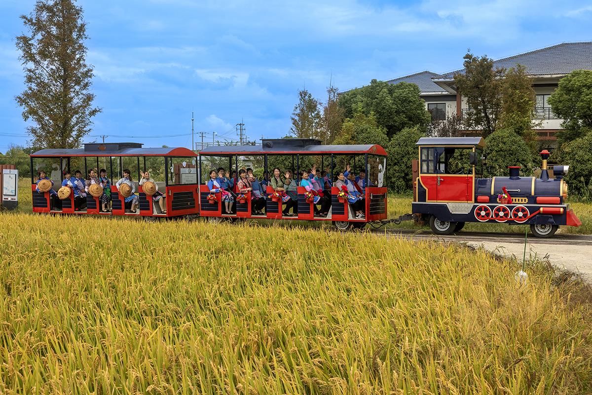 这是苏州北太湖稻香公园下场景,夕阳下稻穗色彩更加丰富多彩,适合打卡拍照