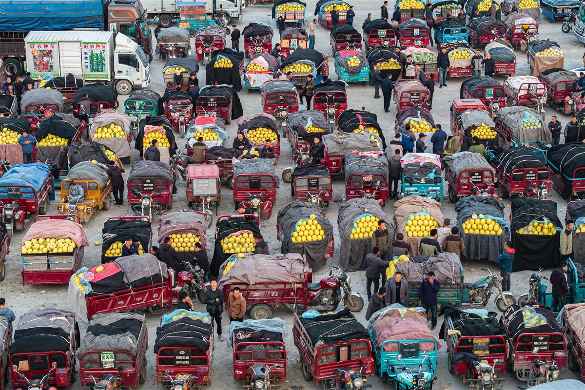 山东省聊城市莘县燕店镇瓜果蔬菜市场,莘县号称“全国第一瓜果蔬菜县”,品种多而全,产量大品质高。
