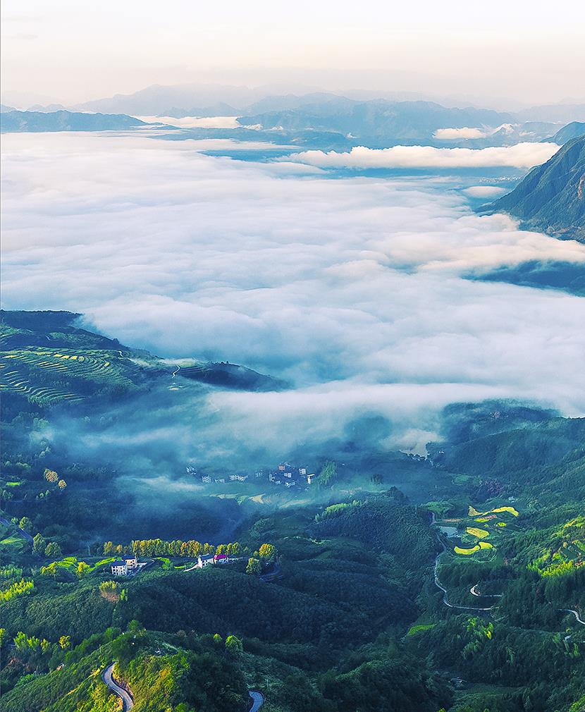 《云海村居》