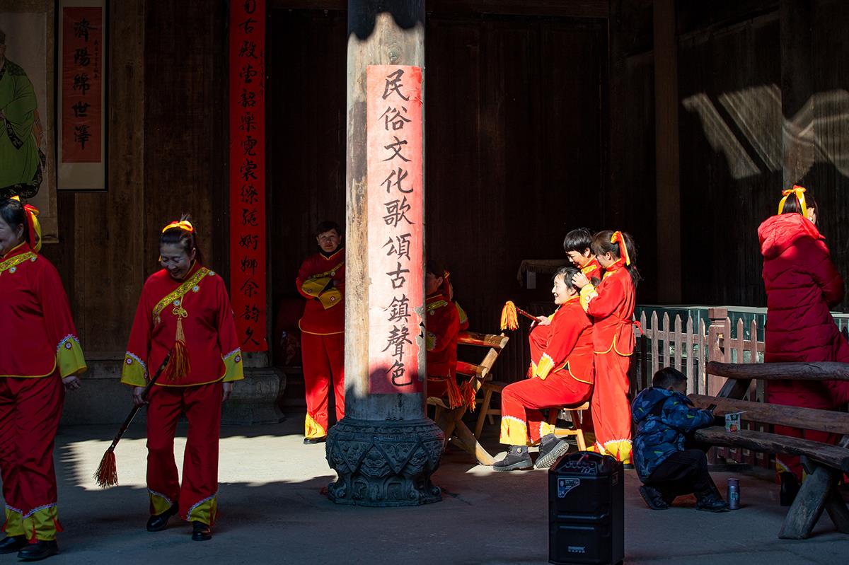 查济古镇组织中老年人为镇“村晚”演出排练。