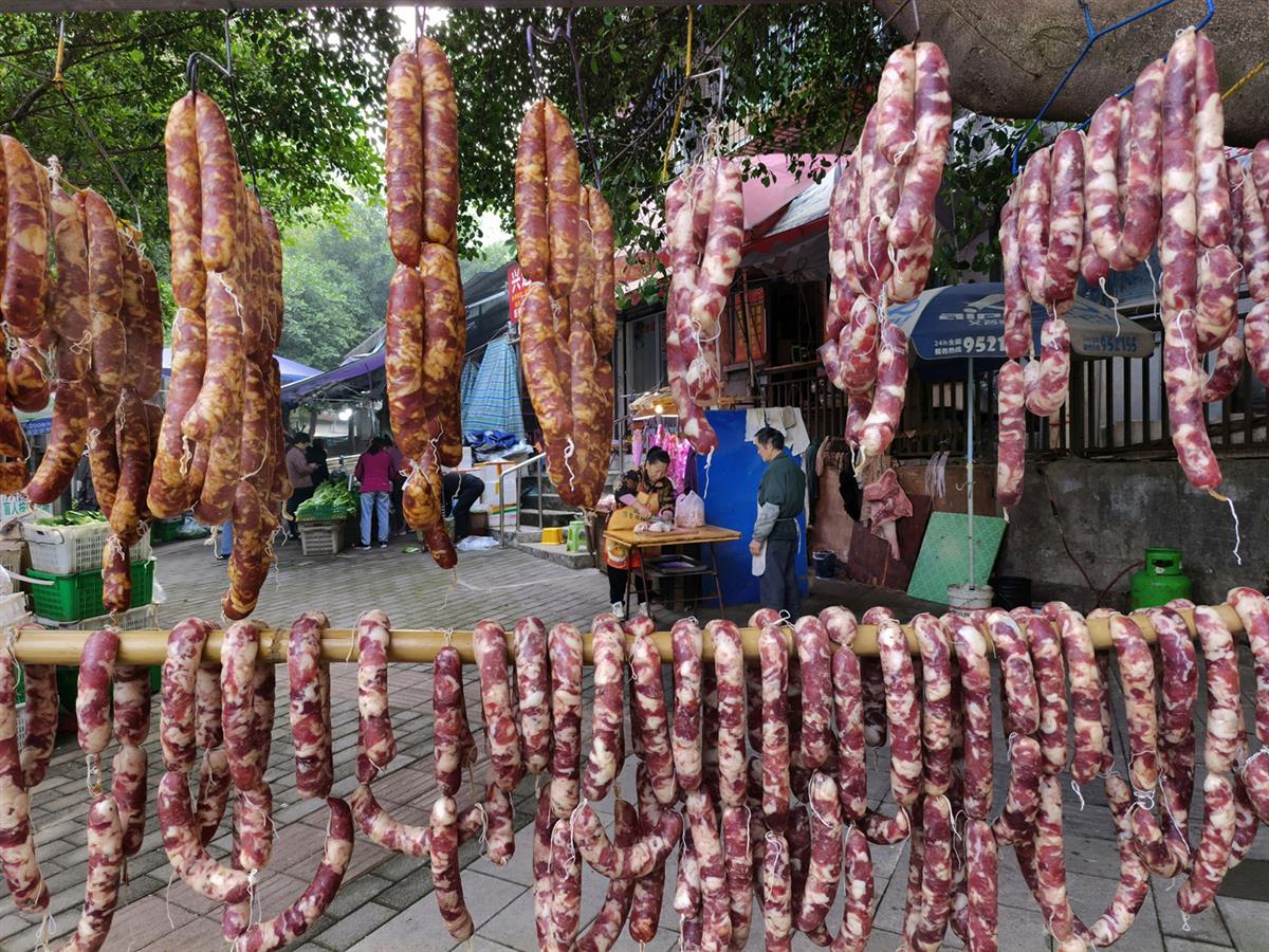 年末岁首,又到了做腊肉、香肠的时候。在居民住宅区里,挂满了香肠、腊肉,充满着浓浓的迎接过年的味道。