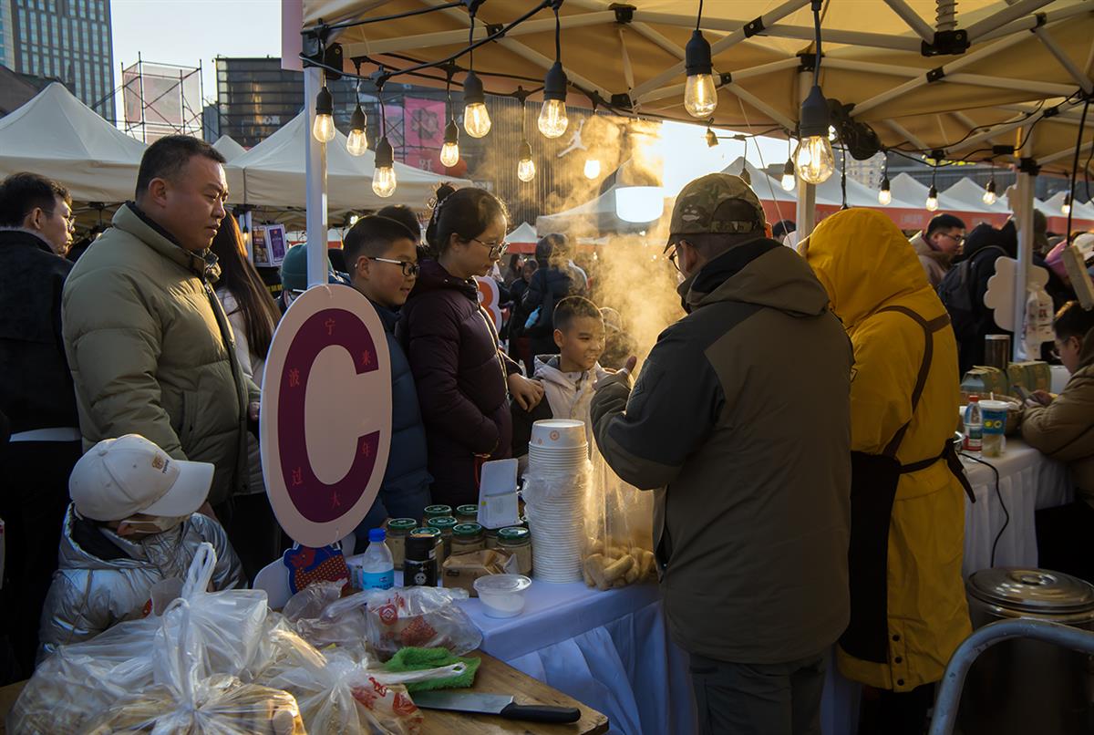 2026年2月7-8日,“来宁波?过大年”2026宁波文旅新春系列活动重头戏——“非遗年市”亮相天一广场。这场集文化惠民、消费赋能、民俗体验于一体的非遗盛宴,既为市民游客解锁了浓浓的年味温度,更给马年春节注入澎湃的经济动能。图为活动现场非遗大集C区古法豆腐制做技艺摊位前,市民游客排起长长的队伍在热气腾腾的烟火中等待买豆腐的场景。