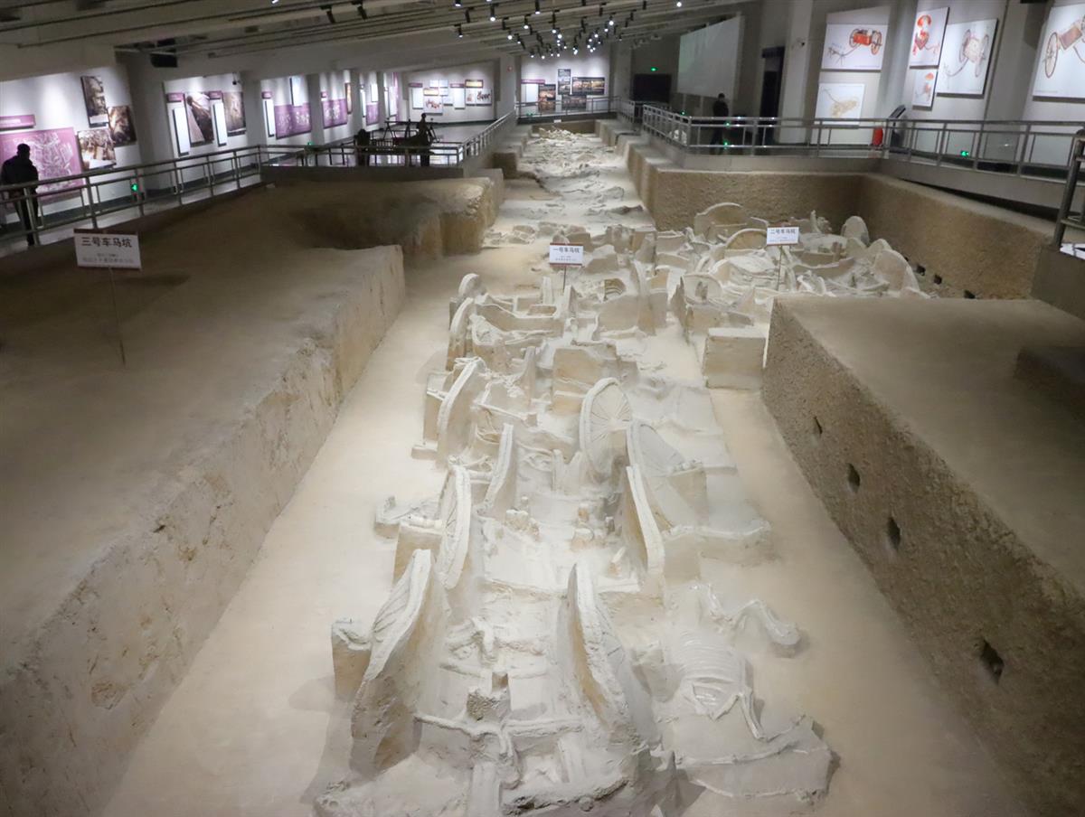 虢国博物馆是建立在国家级重点文物保护单位西周虢国墓地遗址上的一座专题性遗址类博物馆,馆藏保存完整的西周地下车马军阵。