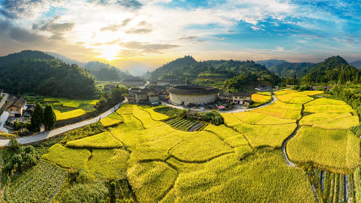 稻浪翻金,土楼映辉