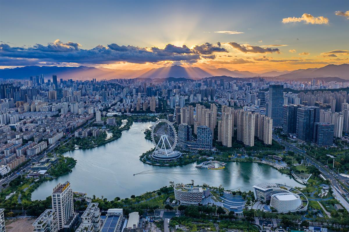 摩天轮与湖湾相映,在晚霞与远山之间,勾勒出兼具未来感与艺术张力的城市新地标。