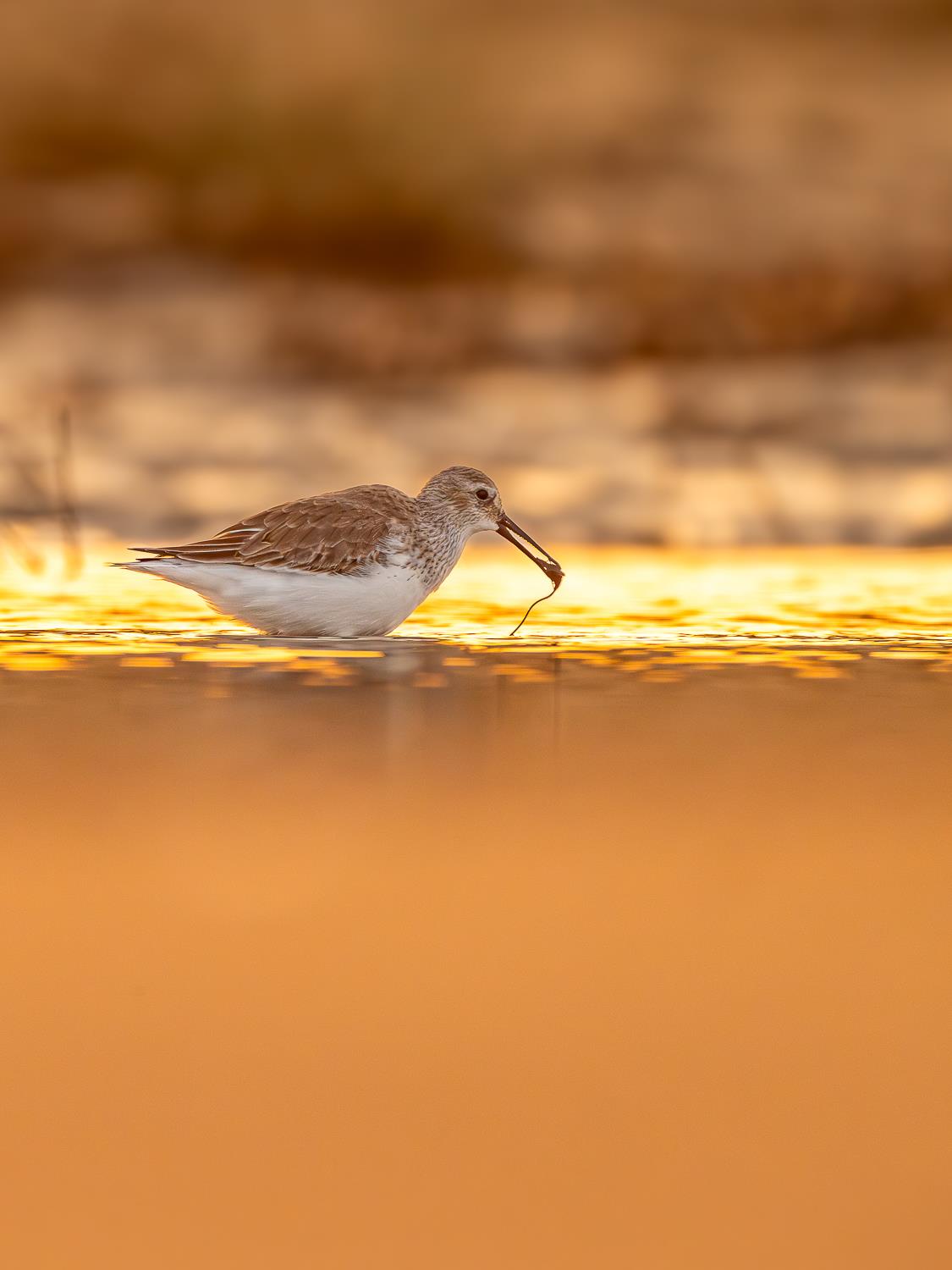 夕阳把滩涂染成暖金,水鸟在浅水中啄取食物,这是湿地生态最本真的馈赠,也是自然循环的生动注脚