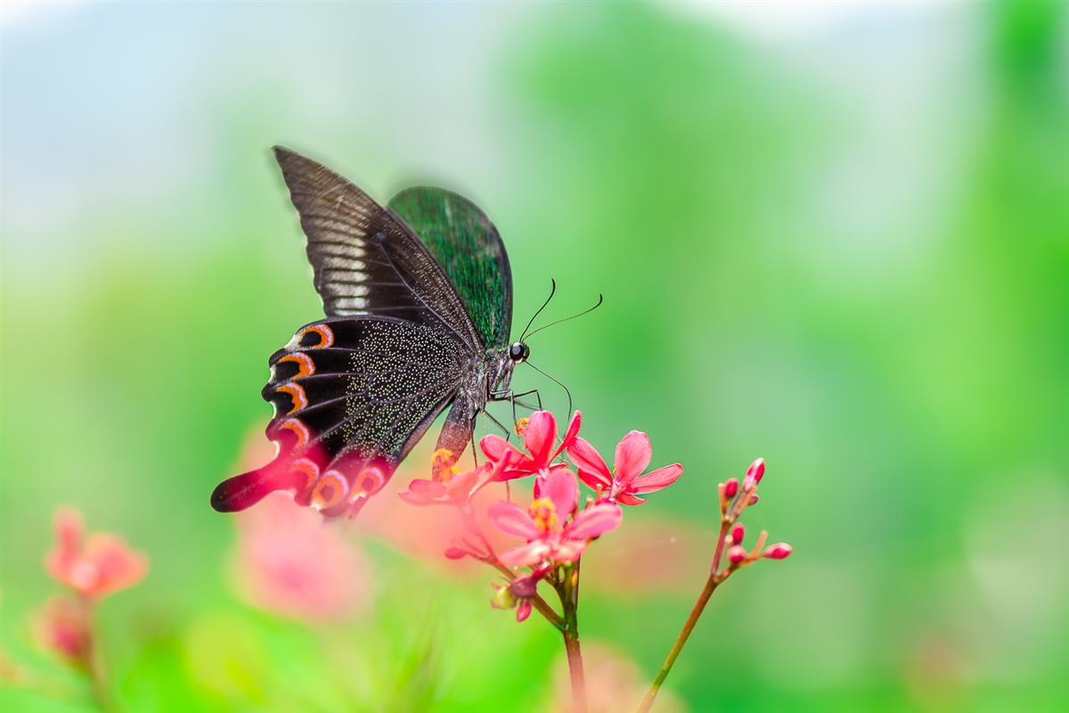 蝶翼轻栖,粉瓣凝香。在绿意漫染的天地间,每一次振翅,都是自然最温柔的呼吸。