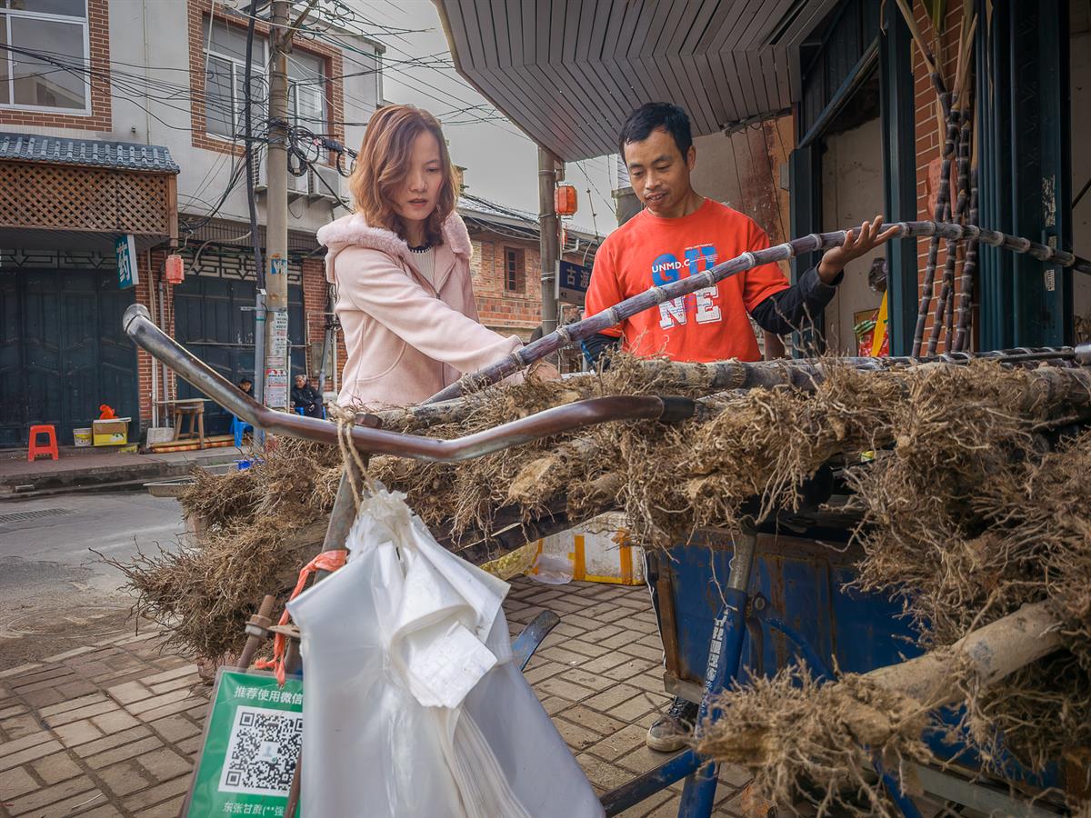 带根的甘蔗,扫码的支付,寻常巷陌的交易里,藏着最踏实的生活温度。