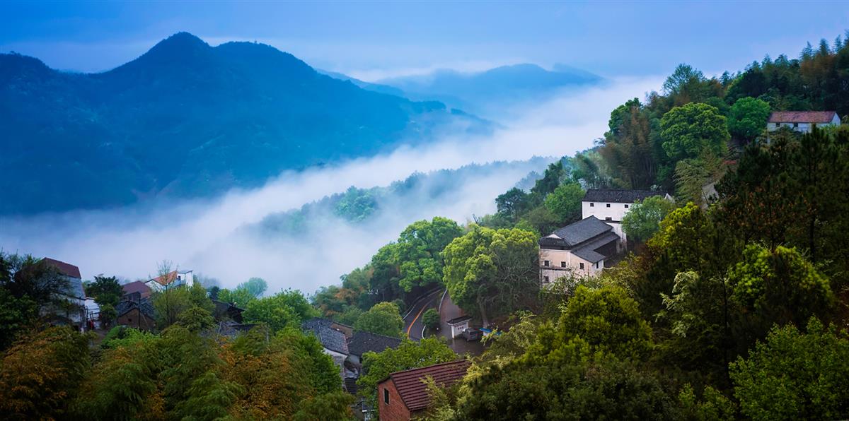 三月的一个早晨,我从义乌城区驱车来到本市著名的桃花坞景区的里美山,从高空俯瞰抗战时期金箫支队第八大队领袖吴山民的故里,只见村庄古色古香、四周竹树繁茂,特别是门前的山谷里,不但布满云雾,而且还不断地往上涌,十分壮观美丽。
