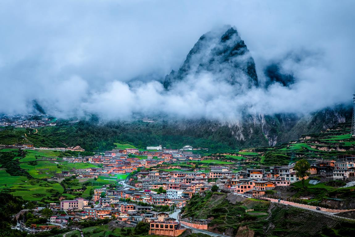 《云中山居图》云雾如纱缠绕青峰,橙红屋舍错落嵌于翠绿坡地,山、云、村交织成画,既显自然的磅礴气韵,又藏人间烟火的温柔,宛如秘境中的桃源胜景。