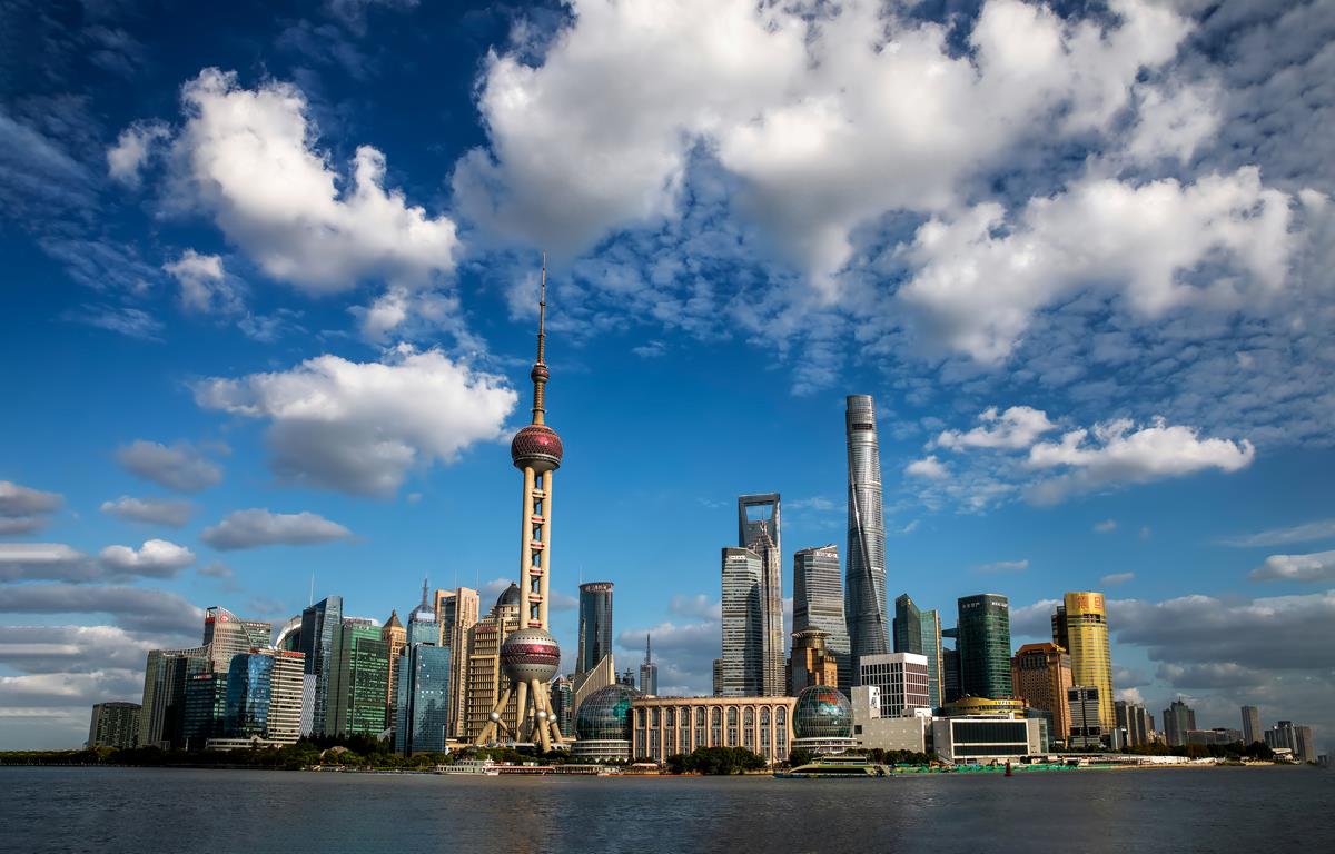 黄浦江畔,东方明珠与摩天楼群如乐手般矗立,在蓝天云絮的幕布下,以玻璃与金属的质感,奏响上海现代化的磅礴交响。