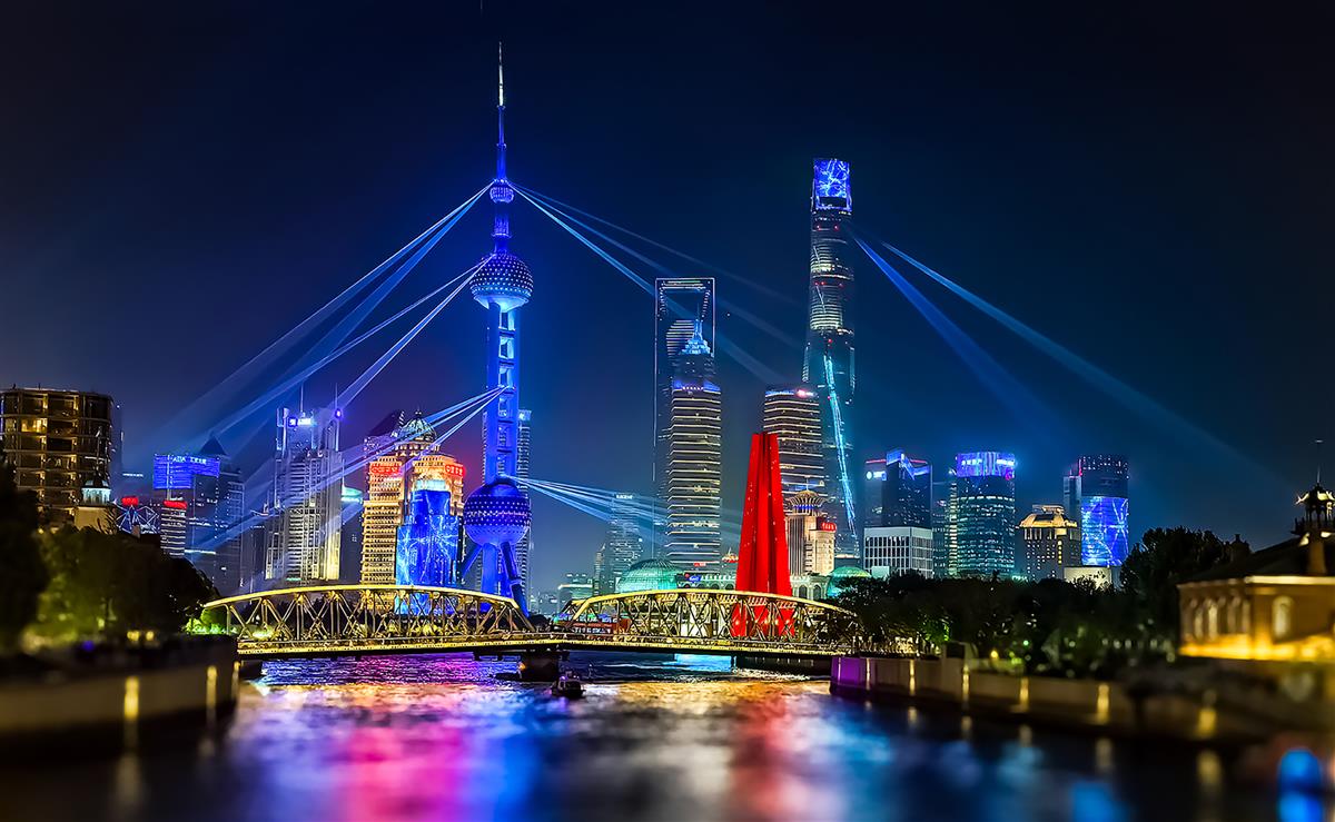 上海陆家嘴的灯光秀吸引了无数中外游客,每个不同角度的拍摄都会有不同的效果。