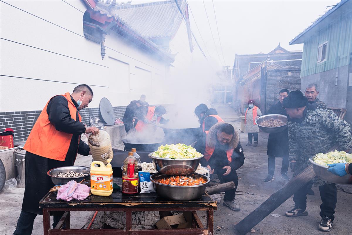 腊八节之际,爱心人士早早准备好食材灶台,为老人们制作腊八粥,满天的烟火升腾气阵阵爱心暖流。