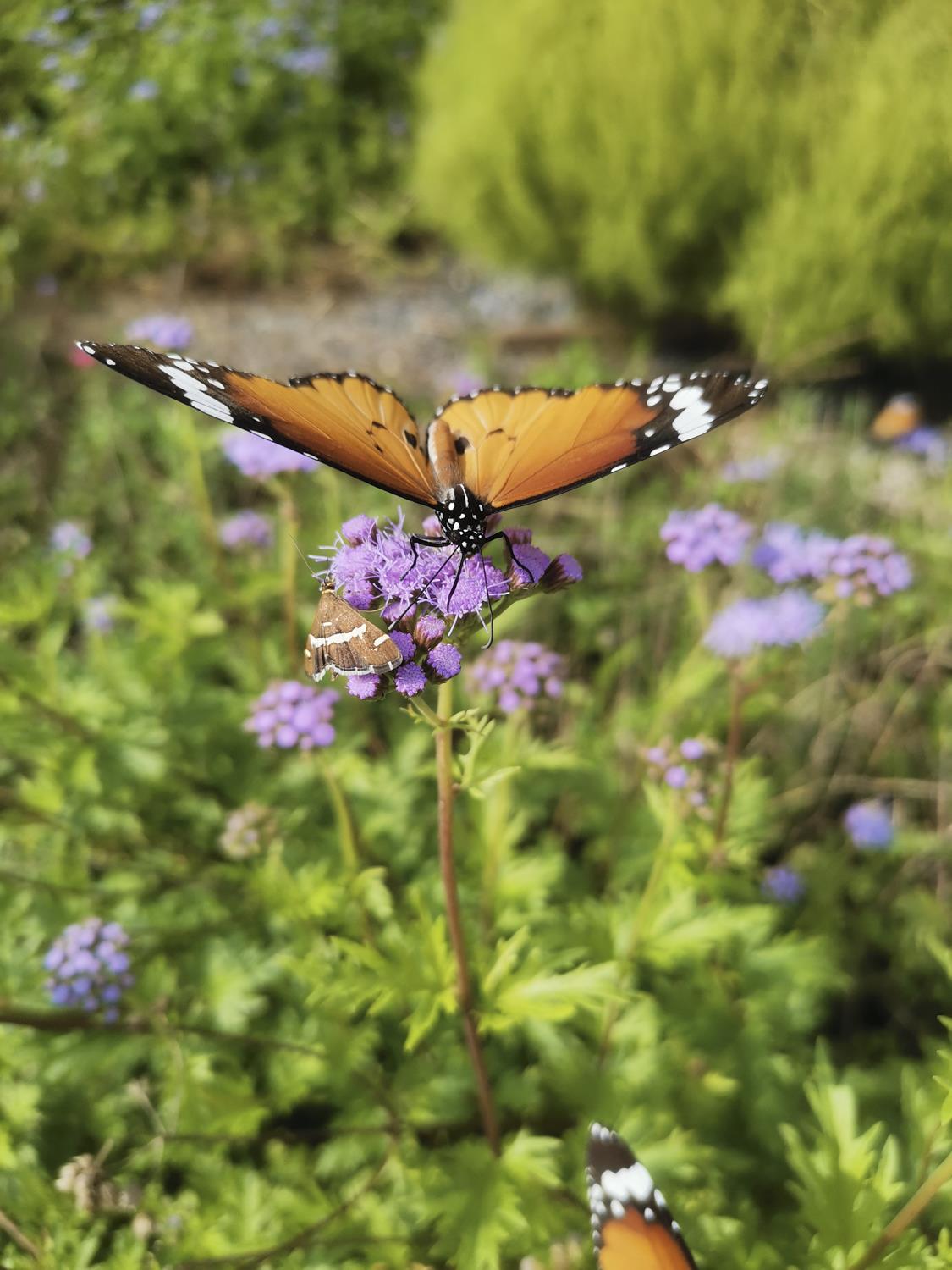 10月份的河湾公园,蝴蝶在花丛中嬉戏。